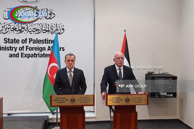 APA-nın Fələstinə ezam olunmuş xüsusi müxbiri xəbər verir ki, bunu Fələstinin xarici işlər naziri Riyad Əl-Maliki azərbaycanlı həmkarı Ceyhun Bayramovla birgə mətbuat qarşısında çıxışı zamanı deyib.