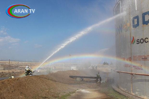 Təlim zamanı çənlər parkında baş vermiş şərti yanğınla əlaqədar hadisə yerinə operativ çatan yanğından mühafizə bölmələri tərəfindən “yanğın” qısa müddətdə “məhdudlaşdırılaraq söndürülüb”.