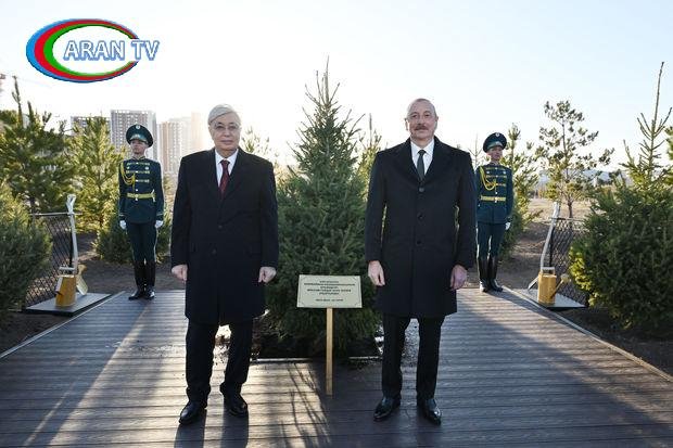 Sonra Azərbaycan Prezidenti İlham Əliyev və Qazaxıstan Prezidenti Kasım-Jomart Tokayev Heydər Əliyev küçəsində yerləşən Botanika bağında ağac əkiblər.