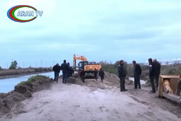 Yuxarı Qarabağ kanalında yaranan qəza şəraitini aradan qaldırmaq üçün sahil bərkitmə işləri aparılır.