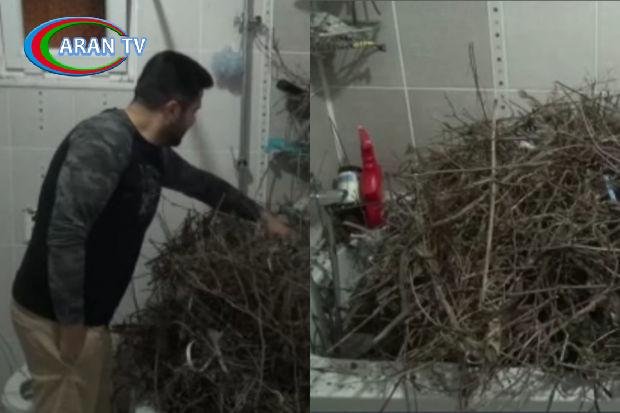 Qarğalar hamamda nəhəng yuva qurdular – VİDEO