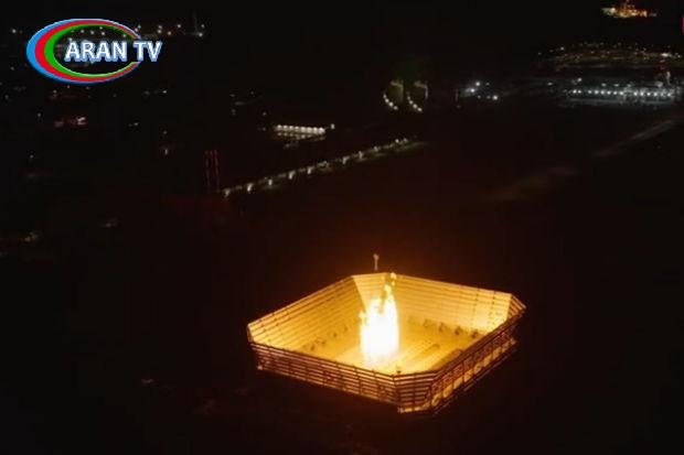 Videoda quruya çıxarılan qazın gecəni işıqlandırdığı anlar əks olunub.