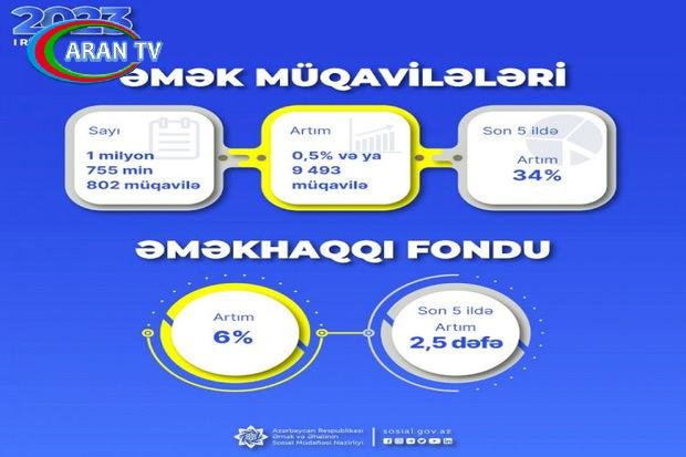 Ümumilikdə son 5 ildə əmək müqavilələrinin sayında 34 faiz, əməkhaqqı fondunda 2,5 dəfə artım baş verib.
