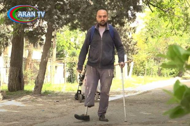 33 yaşlı Emin Əsgərov qəza nəticəsində ayağının birini itirib. Hazırda metal, plastik qablar toplayıb satmaqla pul qazanır.