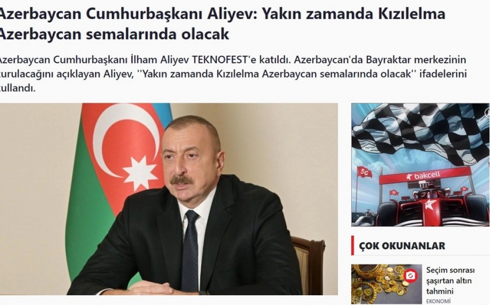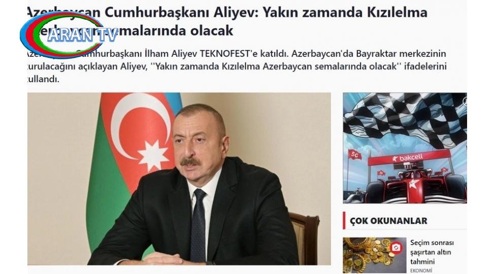 Prezident İlham Əliyevin “TEKNOFEST”də çıxışı Türkiyə mediası tərəfindən geniş işıqlandırılıb