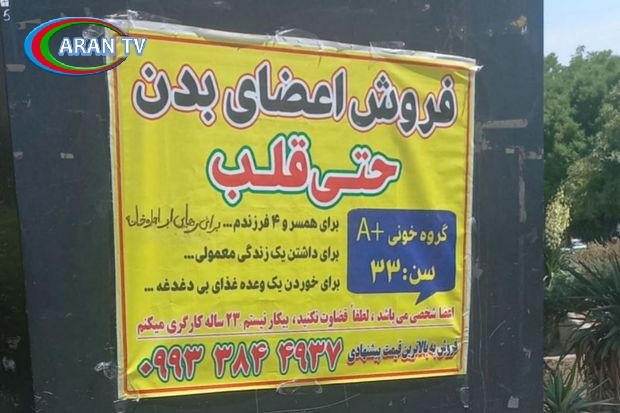 İranın Məşhəd şəhərində küçələrdə insan orqanı satışı ilə bağlı ürəkdağlayan elanlara rast gəlinir.