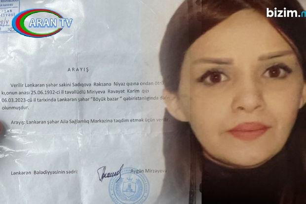 Bildirilib ki, Lənkəran şəhər sakini 1932-ci il təvəllüdlü Rəvayət Miriyevanın dəfn olunma tarixinə dair saxta arayışın verilməsi barədə müraciət əsasında rayon prokurorluğunda araşdırma aparılıb.