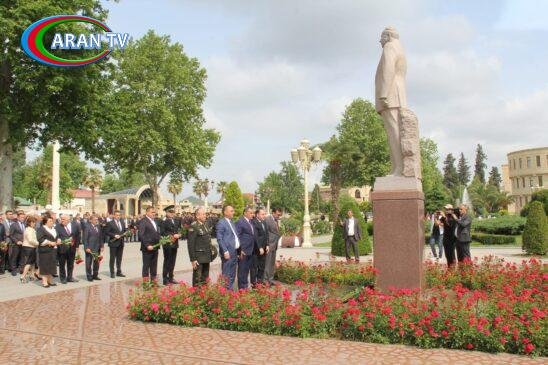 Öncə Bərdə Rayon İcra Hakimiyyətinin başçısı Vidadi İsayevin və aparatın məsul işçilərinin, hüquq-mühafizə orqanlarının nümayəndələrinin, elm və mədəniyyət xadimlərinin, tanınmış ziyalıların, idarə, müəssisə, təşkilatların rəhbərlərinin, şəhid ailələrinin, qazilərin, kütləvi informasiya vasitələrinin və ictimai birliklərin nümayəndələrinin iştirakı ilə Ulu öndər Heydər Əliyevin əziz xatirəsinə ucaldılmış abidəsi önünə tər gül dəstələri düzülmüşdür.