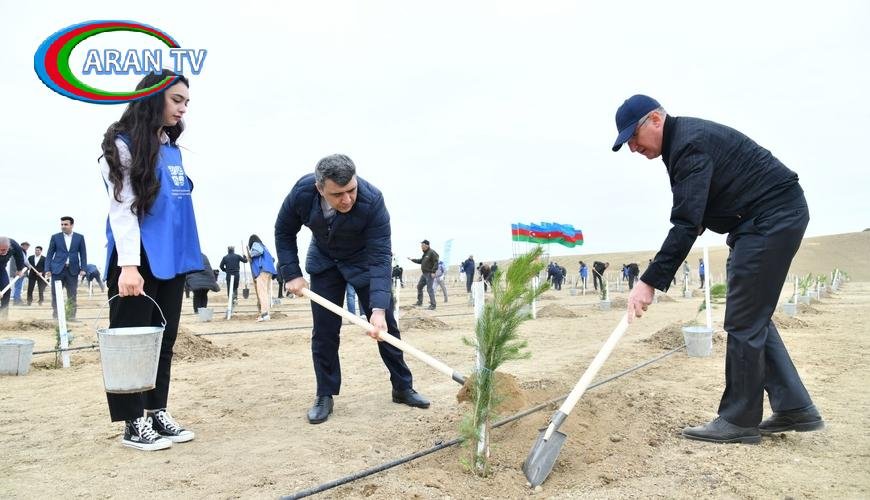 Aksiya zamanı Abşeron yarımadasının torpaq-iqlim şəraitinə uyğun Eldar şamı və zeytun ağacları əkilib.