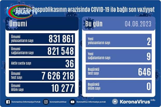 Azərbaycan Respublikasında koronavirus (COVID-19) infeksiyasına 2 yeni yoluxma faktı qeydə alınıb, 9 nəfər müalicə olunaraq sağalıb.