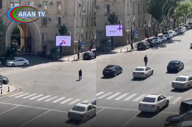 Bakıda piyadanın avtomobillər sıx hərəkət etdiyi yolun ortası ilə hərəkəti təhlükəyə səbəb olub.