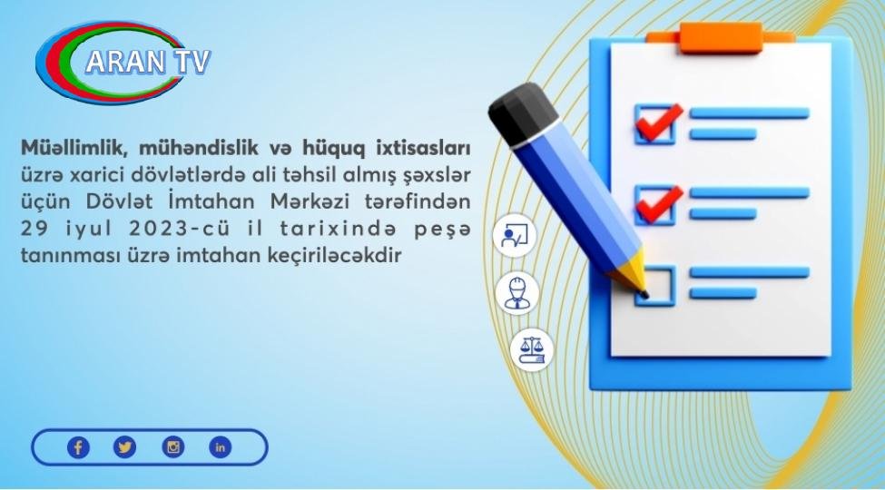 Qeyd edilib ki, Nazirlər Kabinetinin 2023-cü il 3 fevral tarixli Qərarı ilə təsdiq edilmiş “Xarici dövlətlərin ali təhsilə aid kvalifikasiyalarının tanınması Qaydaları”nın 6.2-ci bəndinə əsasən müəllimlik, mühəndislik və hüquq ixtisasları üzrə ərizəçinin Elm və Təhsil Nazirliyinin tabeliyində fəaliyyət göstərən Təhsildə Keyfiyyət Təminatı Agentliyinin sifarişi ilə Dövlət İmtahan Mərkəzinin təşkil etdiyi sınaq imtahanında müvəffəqiyyət qazanması (keçid balının toplanması) tələb olunur. İmtahanın məzmunu, vaxtı, imtahan nəticələrinin qiymətləndirilməsi qaydası və keçid balı agentliklə razılaşdırılmaqla DİM tərəfindən müəyyənləşdirilir.