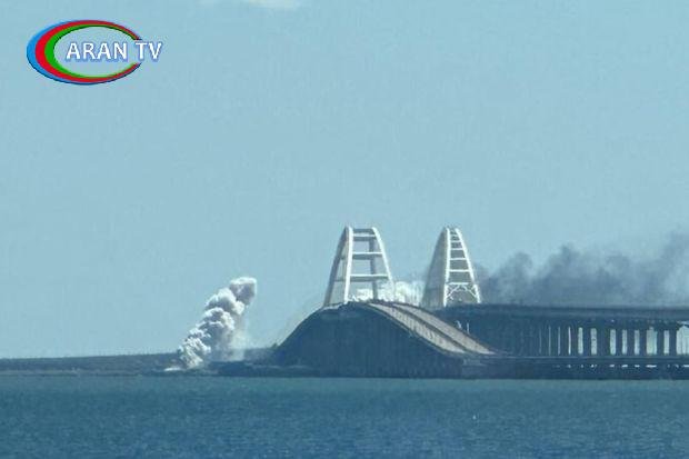 Belə ki, görüntülərdə Kerç körpüsünün üzərindən qatı tüstünün qalxdığı müşahidə olunur.