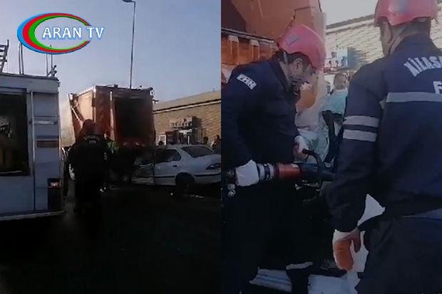 Əzilmiş avtomobildə qalan sürücü xilas edildi – VİDEO