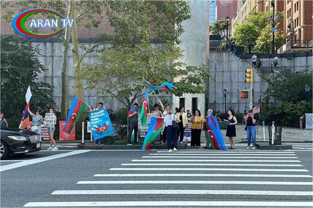 ABŞ-nin Nyu-York şəhərində yaşayan Azərbaycan icmasının fəalları BMT-nin mənzil-qərargahı önündə aksiya keçirirlər.