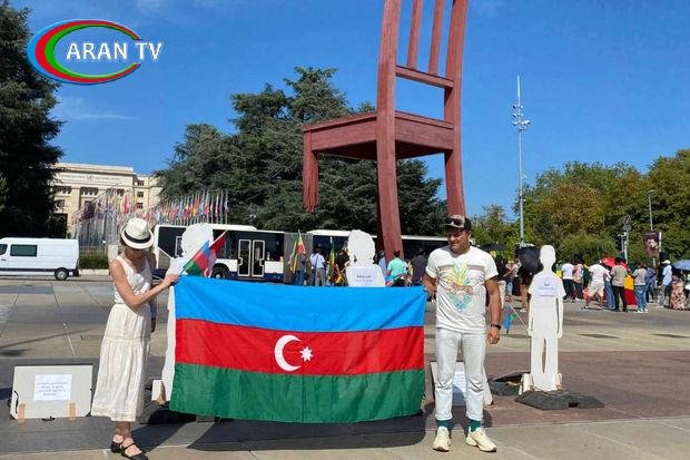 “Azərbaycanlıların İsveçrədəki Mədəniyyət Mərkəzi”nin rəhbəri Qasım Nəsirovun təşkilatçılığı ilə baş tutan aksiya Millətlər Meydanında (məşhur “Sınıq stul” meydanı) gerçəkləşdirilib.