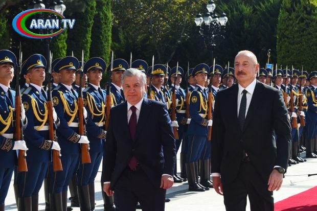 Azərbaycan Prezidenti İlham Əliyev və birinci xanım Mehriban Əliyeva Özbəkistan Prezidenti Şavkat Mirziyoyevi və xanımı Ziroatxon Mirziyoyevanı qarşılayıblar.