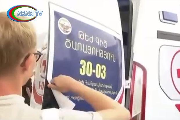 Belə ki, ermənilərin təcili yardım maşınının üzərinə vurduqları qondarma rejimi təbliğ edən banner sökülüb.