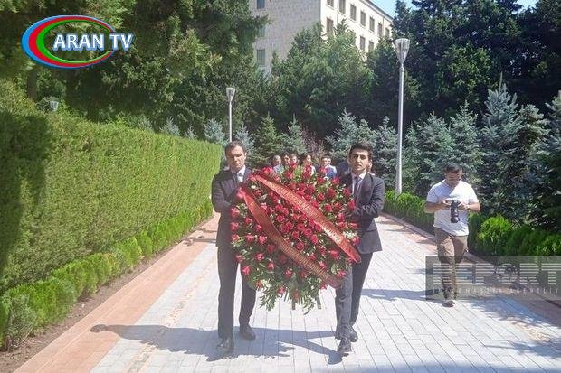 “Report” xəbər verir ki, nümayəndə heyətinin üzvləri ulu öndərin abidəsi önünə əklil qoyublar.