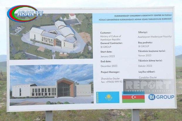 “Füzulidə Kurmanqazı adına Uşaq Yaradıcılığının İnkişafı Mərkəzinin tikintisi davam etdirilir, tikinti işləri 60 faiz yerinə yetirilib”.