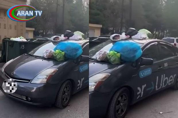 Sakinlər sürücünü cəzalandırmaq üçün park vəziyyətində olan nəqliyyat vasitəsinin üzərinə zibil torbaları yığıblar.