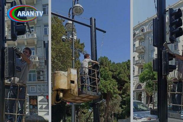 Bakının bir neçə küçəsində yeni tipli işıqfor dirəkləri quraşdırılıb – VİDEO