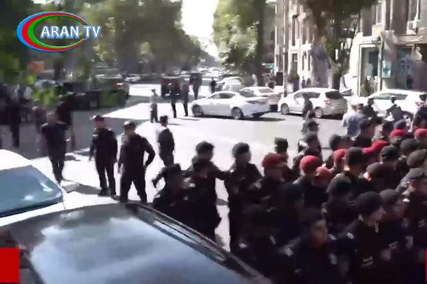 Etirazçılar Qarabağda baş verən hadisələrə görə Paşinyanın istefasını tələb edirlər. Binanın girişində bir neçə cərgə xüsusi təyinatlılar düzülüblər. İnsanlar aksiyanın keçirildiyi əraziyə axışmaqda davam edirlər.