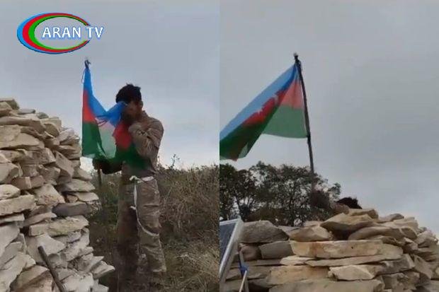 Görüntülərdən aydın olur ki, Silahlı Qüvvələrimizin əsgəri Xocalıda düşməndən azad olunmuş döyüş postuna Azərbaycan bayrağını sancır və “Qarabağ Azərbaycandır!” şüarı səsləndirir.