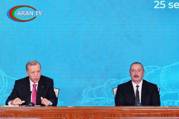 AZƏRTAC xəbər verir ki, bu barədə Türkiyə Prezidenti Rəcəb Tayyib Ərdoğan Azərbaycan Prezidenti İlham Əliyev ilə keçirilən mətbuata bəyanatında bildirib.