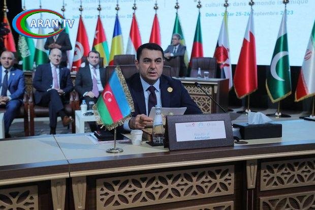 İslam Dünyası Mədəniyyət Nazirlərinin 12-ci Konfransına yüksək səviyyədə ev sahibliyi etdiyinə və qonaqpərvərliyə görə Qətər hökumətinə və ICESCO rəhbərliyinə, mədəniyyət naziri Şeyx Əbdülrəhman bin Hamad Saniyə təşəkkürünü bildirən natiq daha sonra qeyd edib ki, Prezident İlham Əliyev Azərbaycanın bu təşkilatla əməkdaşlığa xüsusi önəm verir.