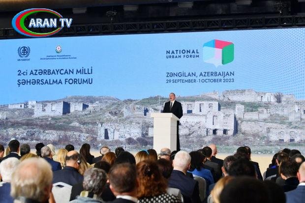 AZƏRTAC xəbər verir ki, bu barədə Azərbaycan Prezidenti İlham Əliyev sentyabrın 29-da Zəngilanda keçirilən “Davamlı şəhərlər iqtisadi inkişafın hərəkətverici və bərabərsizliklərlə mübarizə aparan qüvvəsi kimi” mövzusunda 2-ci Milli Şəhərsalma Forumunun açılış mərasimində çıxışı zamanı bildirib.