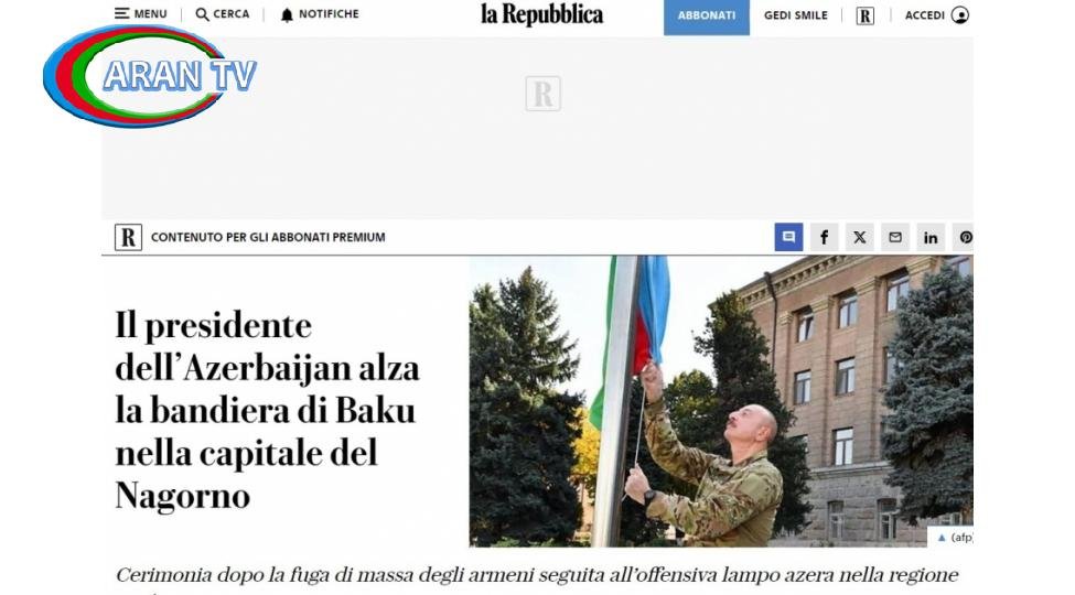 İtaliya qəzeti: Prezident İlham Əliyev Xankəndidə Azərbaycanın Dövlət Bayrağını ucaldıb