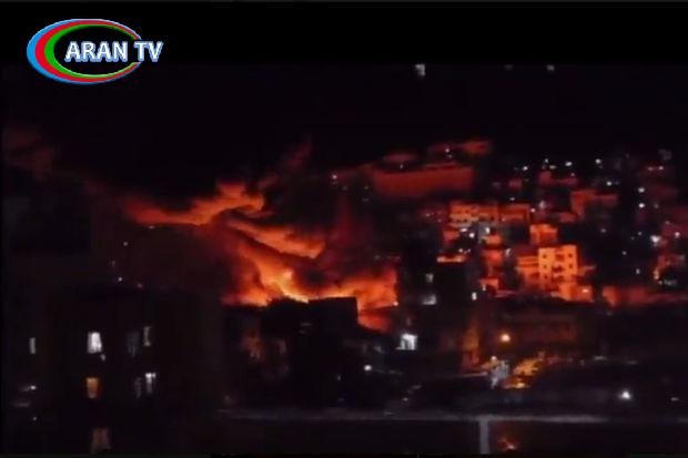 Sosial şəbəkələrdə İsrail Müdafiə Qüvvələrinin zərbələri nəticəsində baş verən güclü yanğının videogörüntüləri yayılıb.