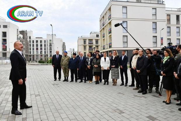 Əziz bacılar, qardaşlar, dostlar, bir daha təbrik edirəm. Bu gün həm sevincli, həm kədərli gündür. Qızımızın göz yaşları da, təbii ki, heç vaxt dayanmayacaq (sakinlərdən birinə işarə edir – red.). Bunu biz bilməliyik, 10 il keçsə də, 20 il keçsə də. Hamımız göz yaşları tökmüşük və tökürük.