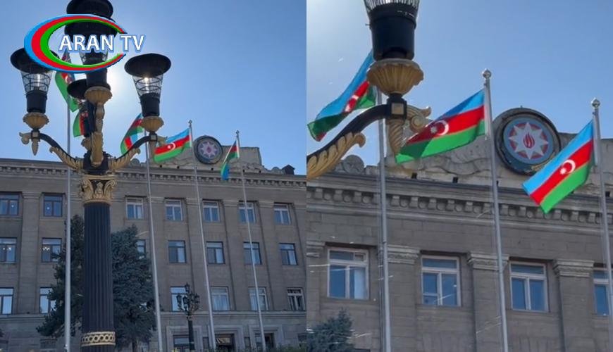 ARANTV.AZ xəbər verir ki, videoda şəhərin mərkəzində dalğalanan Azərbaycan bayraqları əks olunub.