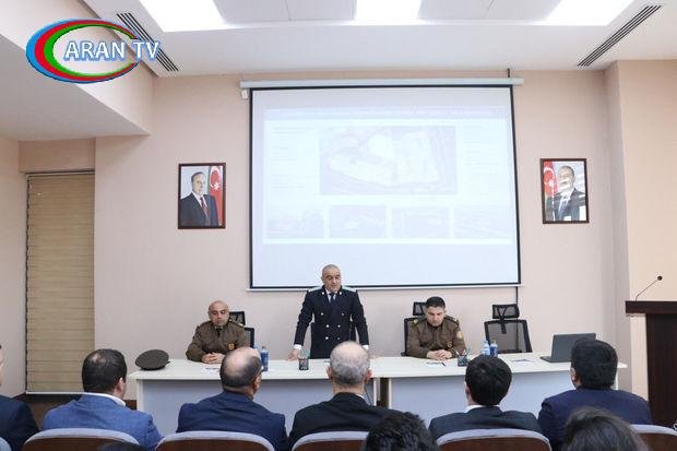 Tədbirin praktiki hissəsi başa çatdıqdan sonra inzibati binanın akt zalında FHN-in Mülki müdafiə işinin təşkili Baş idarəsinin əməkdaşları tərəfindən mülki müdafiə işinin təşkili ilə bağlı təbii və texnogen xarakterli fövqəladə hadisələrin baş vermə səbəbləri, onların qarşısının alınması və davranış qaydaları üzrə ətraflı məlumat verilib.