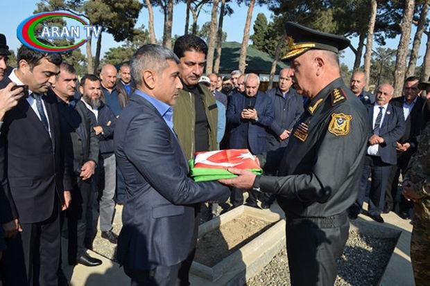 Tabut üzərindəki üçrəngli Azərbaycan bayrağı əbədi xatirə kimi saxlanılması üçün mərhumun ailəsinə təqdim edilib.