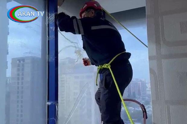 Xilasedicilər 15 mərtəbəli yaşayış binasının 13-cü mərtəbəsində güclü külək nəticəsində sınan pəncərə şüşələrini götürüb kənarlaşdıraraq təhlükəni aradan qaldırıblar.
