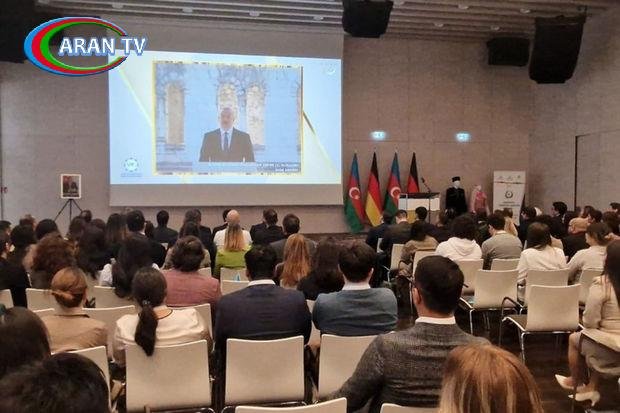 Sonra tədbirin moderatoru Dr. Nuran Abdullayev Almaniya Azərbaycanlıları Alyansının və Almaniyadakı azərbaycanlı həkimlərin fəaliyyətindən bəhs edən videoçarxı təqdim edib.