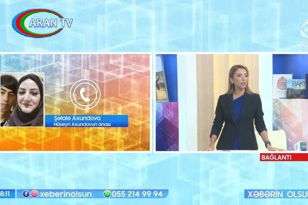 ARANTV.AZ xəbər verir ki, Hüseyn Axundovun anası Şəlalə Axundova ATV-nin “Xəbərin olsun” proqramının efirində canlı bağlantıya qoşulub.