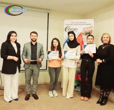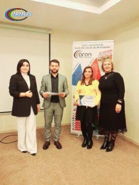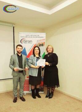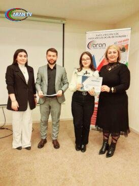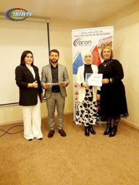 Görüşün ikinci hissəsində təlim iştirakçıları “Aran Media Group”tərəfindən sertifikatlara,spikerlər də diplomlarla təltif olunub,həmçinin görüşün sonlarına yaxın “Aran Media Group” nəzdində fəaliyyət göstərən “Min İl Tədris Mərkəzi” keçirmiş olduğu “Loqopediya” kursunu müvəffəqiyyətlə bitirən tələbəsi Səbinə Abdullayeva diplomla ,həmçinin sertifikatla təltif edilib.