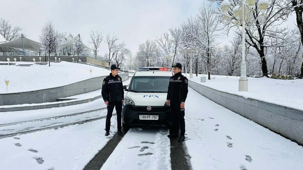 Polis əməkdaşları hava şəraiti ilə əlaqədar respublikamızın bir sıra bölgələrində gücləndirilmiş rejimdə fasiləsiz xidmət aparır.