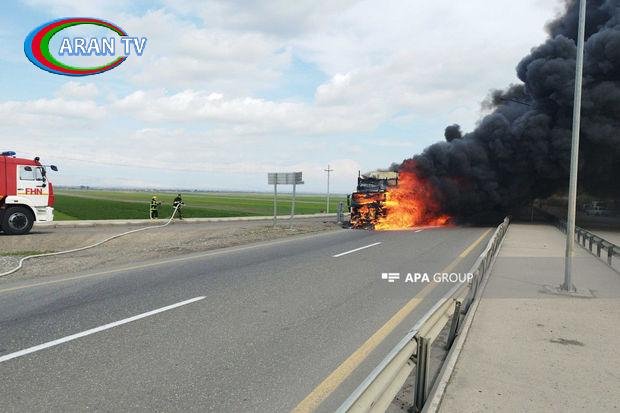 Yanğın söndürülüb, yük maşınının qalan hissəsi yanğından mühafizə edilib.