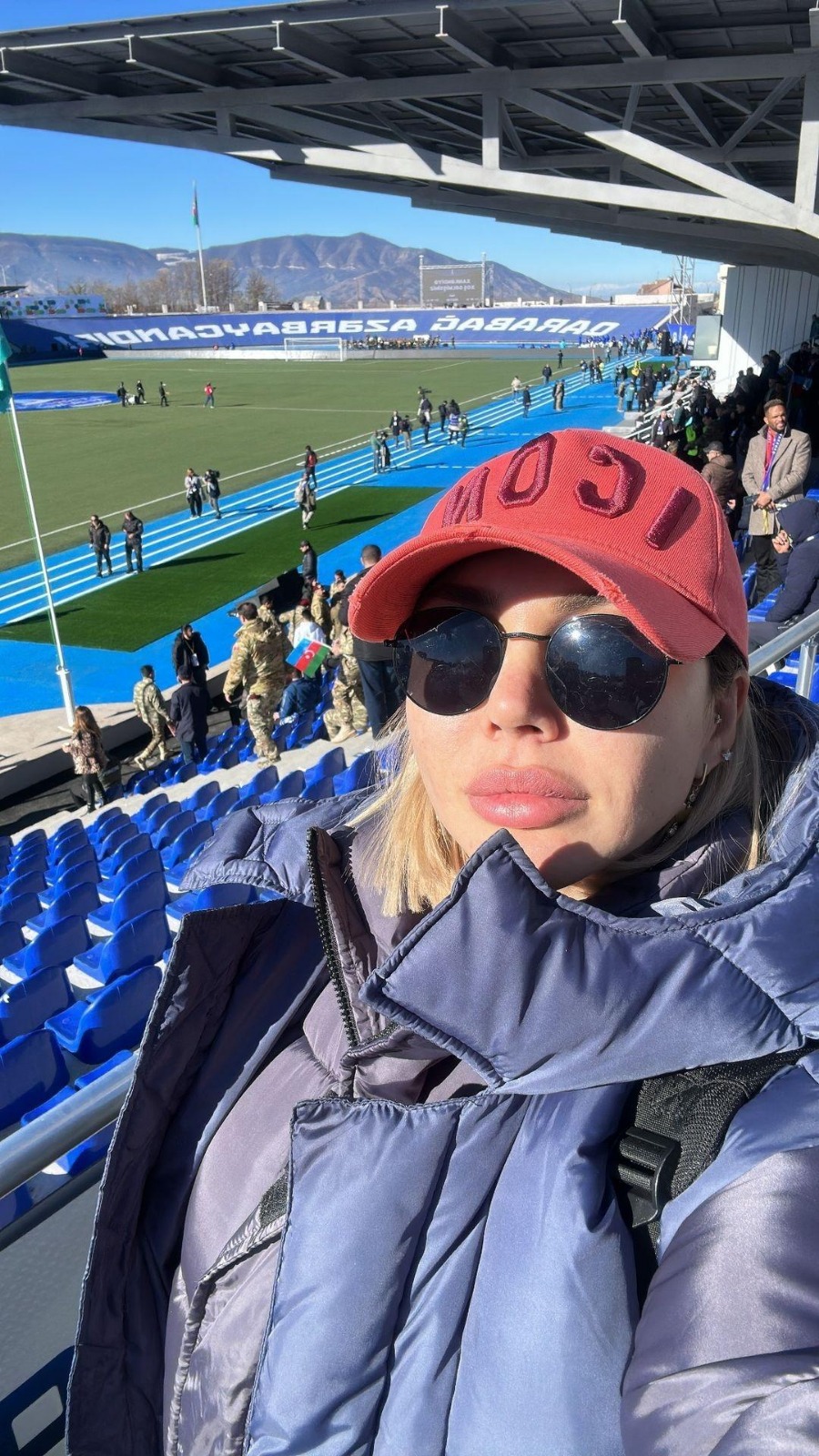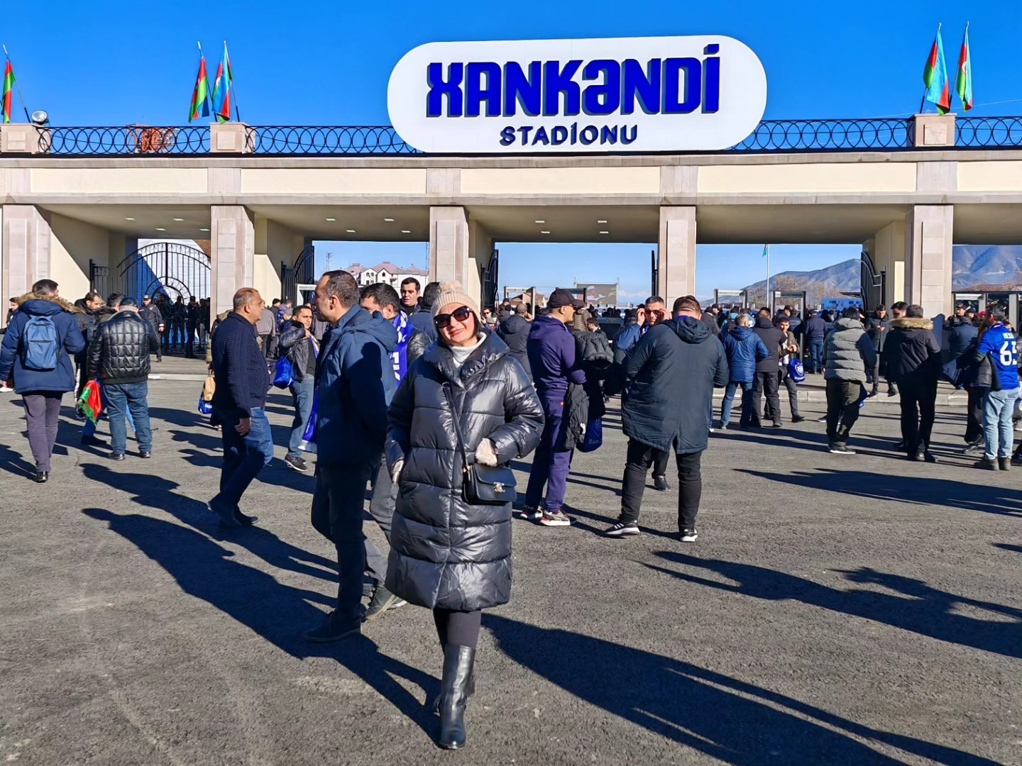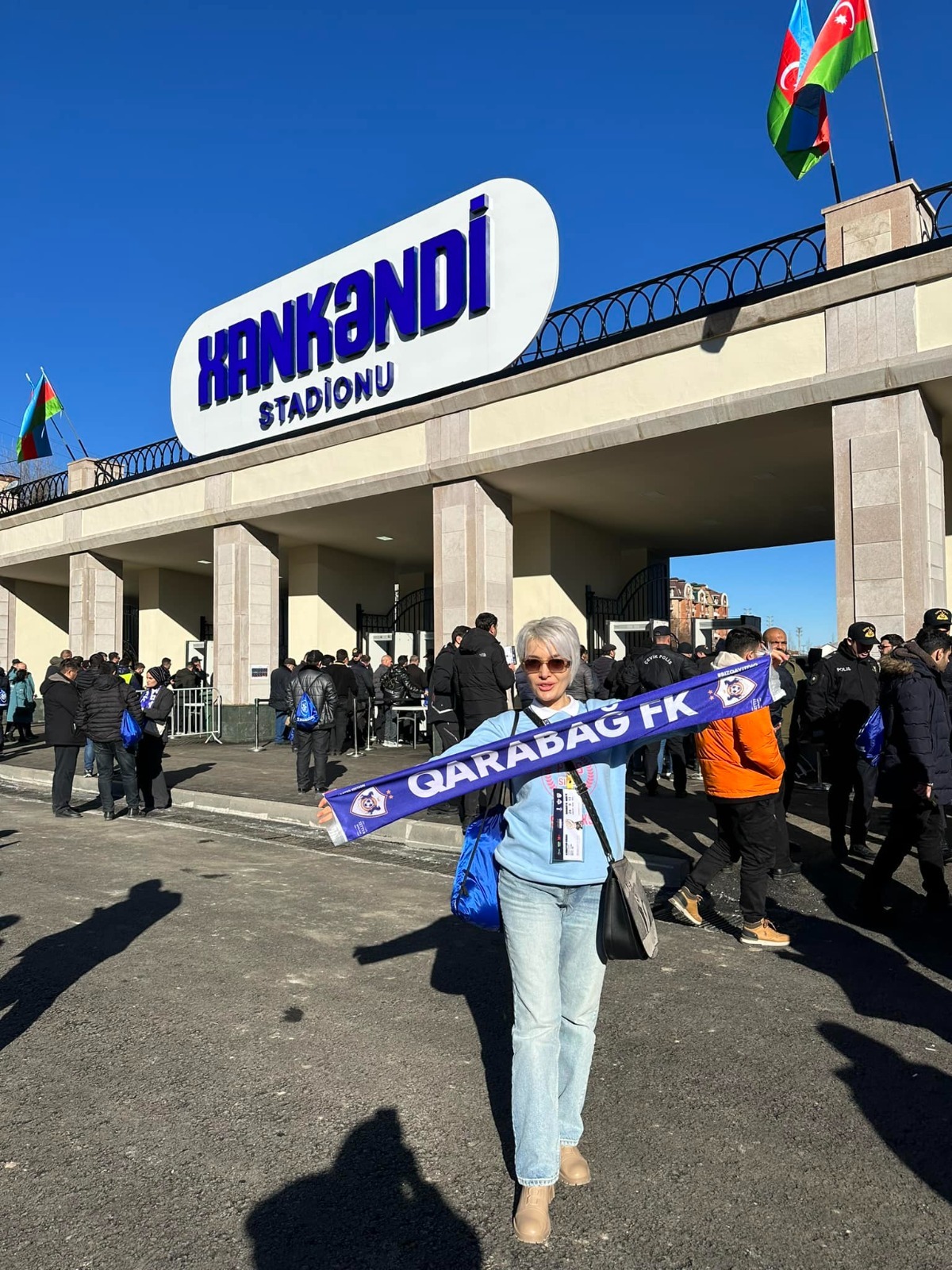 Şuşa Şəhəri Dövlət Qoruğu İdarəsinin İctimaiyyətlə əlaqələr və informasiya təminatı şöbəsinin müdiri Səmayə Məmmədova da stadionun önündən paylaşım edib.