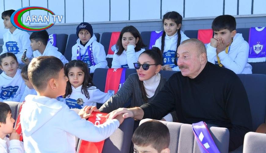 ARANTV.AZ xəbər verir ki, Azərbaycan Respublikasının Prezidenti İlham Əliyev və birinci xanım Mehriban Əliyeva oyunu şəhid övladları ilə birlikdə izləyiblər.