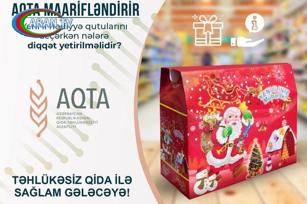 Uşaqlar üçün şirniyyatla dolu Yeni il hədiyyə qutularının seçilməsi və ya valideynlər tərəfindən hazırlanması zamanı son dərəcə diqqətli olmaq lazımdır. Belə ki, hədiyyə qutularını mağazalardan, yarmarkalardan və digər rəsmi satış yerlərindən almaq məsləhət görülür. Həmçinin bilmək lazımdır ki, belə qutuların üzərində göstərilən tarix içərisindəki məhsulların deyil, qutuların qablaşdırılma tarixidir. Ona görə də, istehlakçılara hədiyyə qutuları alarkən içərisindəki qida məhsullarının aydın və oxunaqlı şəkildə etiketlənməsinə, istehsal tarixinə, adına, əmtəə nişanına, xalis çəkisinə, qida dəyərliliyinə, həmçinin istehsalçı müəssisənin adına, ünvanına və digər məlumatlara diqqət yetirməsi tövsiyə olunur. Bununla yanaşı, Yeni il hədiyyə qutularını alarkən onun qablaşdırılmasının deformasiya olunmadığına, əzilmədiyinə, korlanmadığına diqqət yetirilməlidir. Eyni zamanda qutuların içərisindəki məhsullar da diqqətdən yayınmamalıdır. Yadda saxlamalıyıq ki, hədiyyə qutularının içərisinə xüsusi saxlanma şəraiti tələb edən, müvafiq temperatur rejiminə riayət edilmədiyi təqdirdə xarab olma ehtimalı yüksək olan yoğurtlar, kremli qənnadı və kəsmik içlikli məmulatlar yerləşdirilməməlidir.