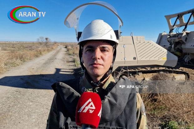 “Hazırda işlətdiyimiz “GCS-200” markalı, kənardan idarə edilən, müasir minatəmizləyən robotlardır. Bu robotların vasitəsi ilə piyada və tank əleyhinə minaların təmizlənməsi işlərini daha sürətlə həyata keçirmək olur. Robotlar iki hissədən ibarətdir – biri yumşaq torpaq səthini minalardan təmizləmək üçün, digəri isə daşlıq əraziləri minalardan təmizləmək üçün istifadə olunur. Bir robotu idarə etmək üçün bir mexanik və iki operator olur. Robotun arxa hissəsində özünü dartma xüsusiyyəti var və robot 10 kiloqram tratil ekvivalenti gücündə partlayışa dözümlüdür. Yəni, bu tip partlayış zamanı yalnız robotun qarşısındakı hissə zədələnə bilər, digər hissələr heç bir zədə görmür”.