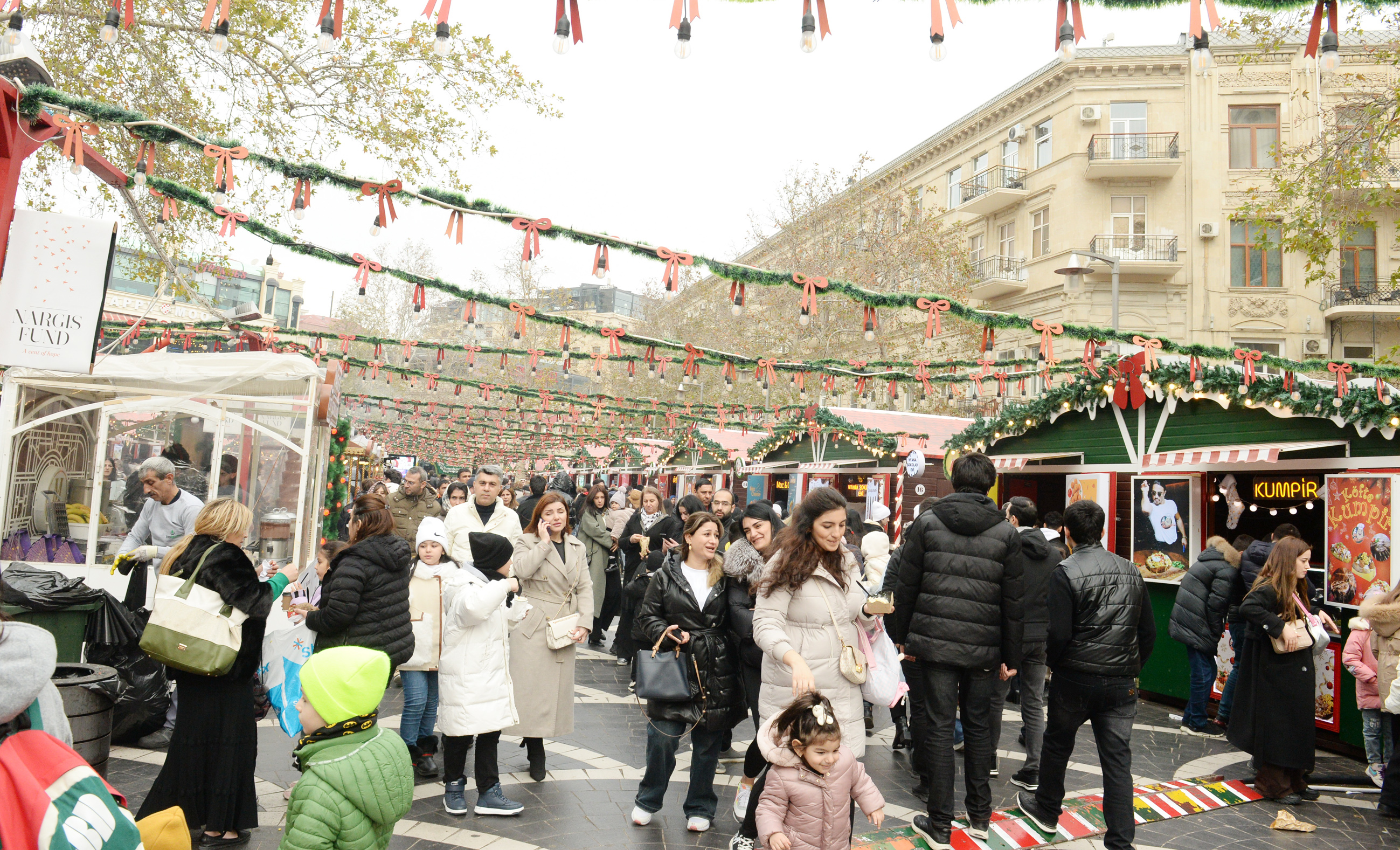 Hər il bu vaxtlar “Nargis” Fondunun təşkil etdiyi həmin xeyriyyə yarmarkası öz adını tamamilə doğruldur. Buraya üz tutanlar arasında uşaqları da görmək mümkündür. Meydanda onların əylənməsi üçün xüsusi oyun zonaları yaradılıb. Burada quraşdırılan taxta köşklərdə qonaqlara şirniyyat, ətriyyat, oyuncaq, yolka bəzəkləri təklif edilir.
