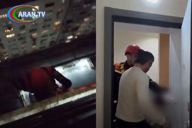 Xilasedicilər alpinist ləvazimatlarının köməyi ilə 17 mərtəbəli yaşayış binasının 14-cü mərtəbəsində yerləşən mənzilə eyvandan daxil olaraq nəzarətsiz qalmış uşağı xilas ediblər.