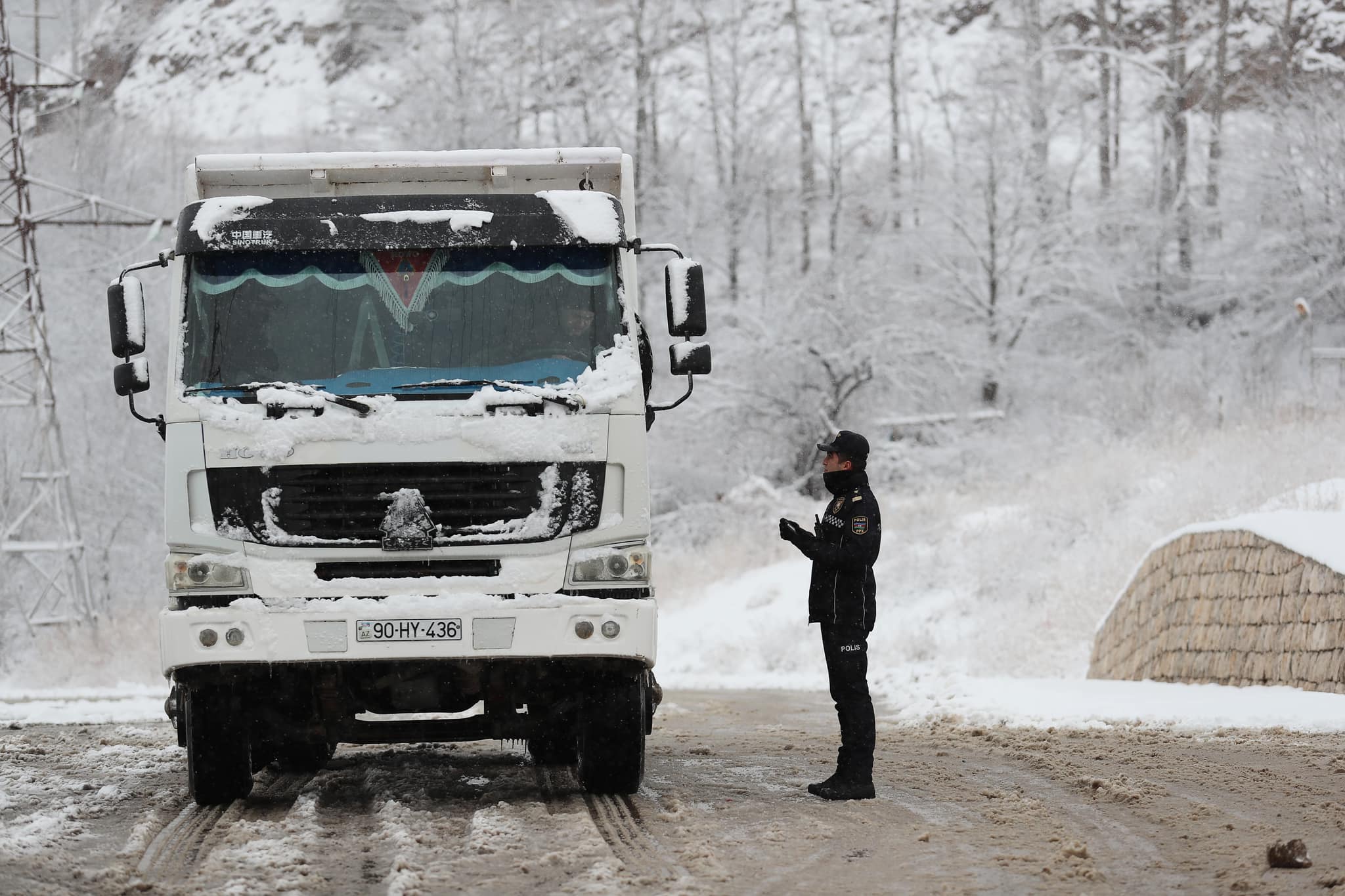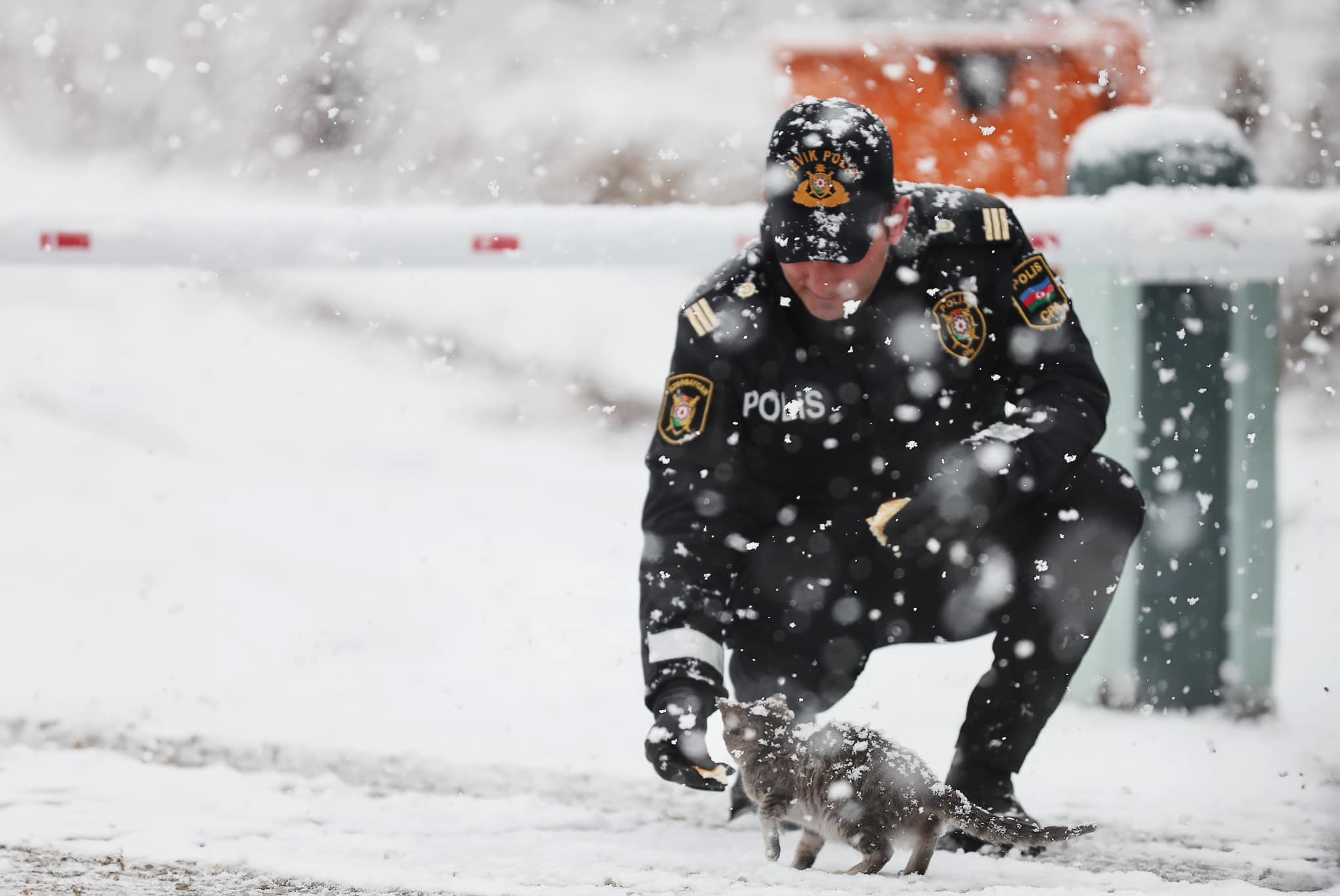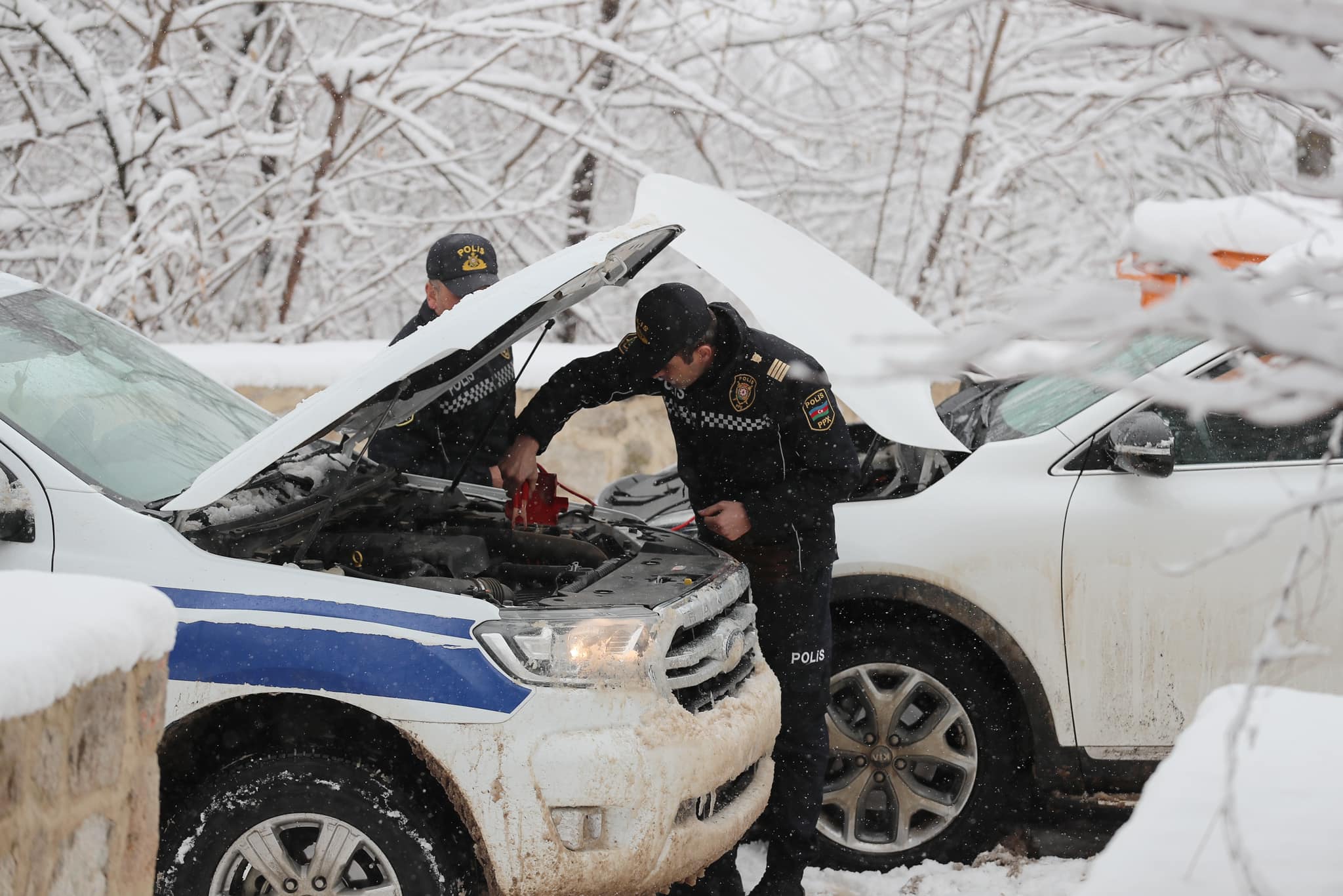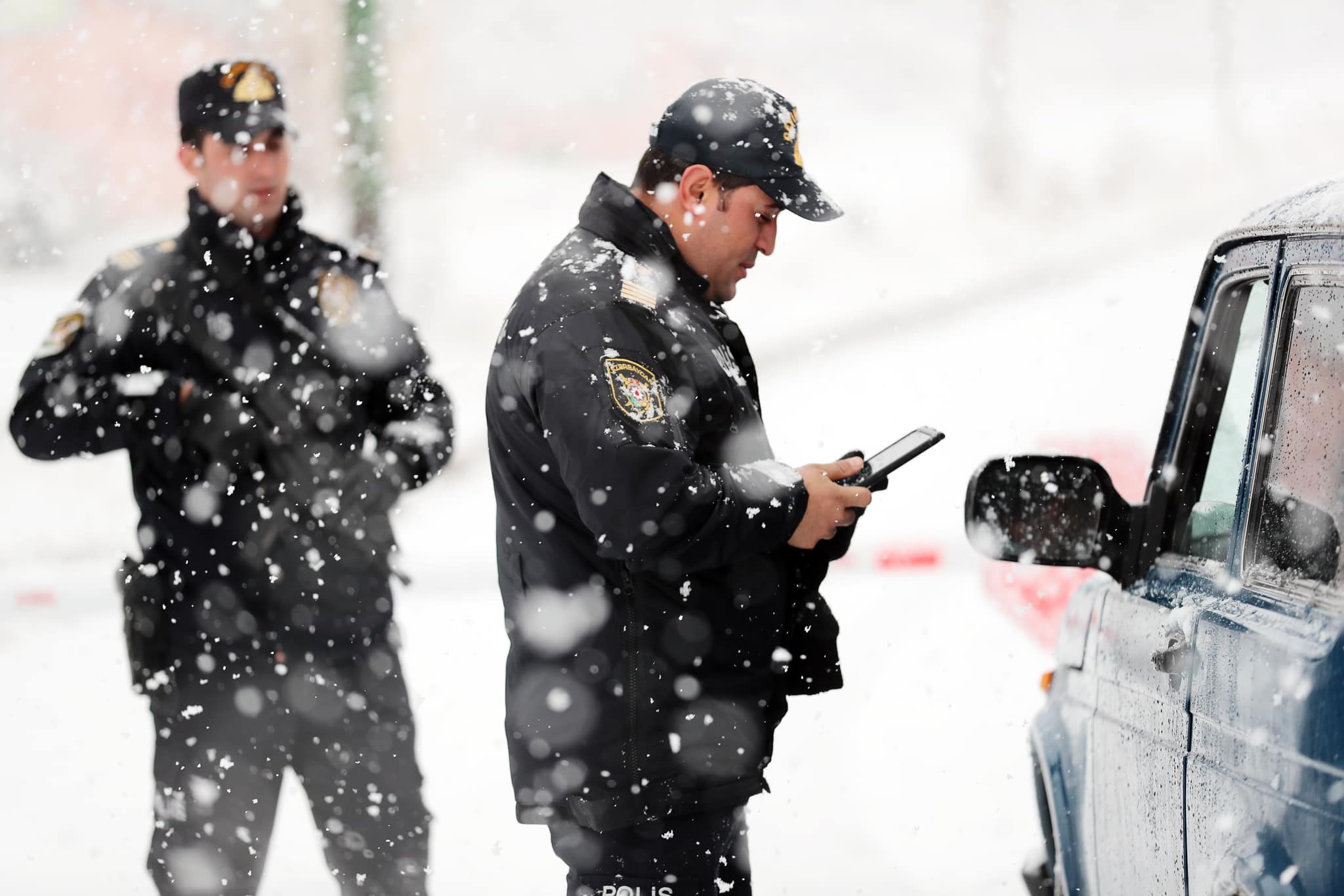 Qarlı və şaxtalı hava şəraitinə baxmayaraq, Azərbaycan polisi öz xidmətini şərəflə yerinə yetirir.